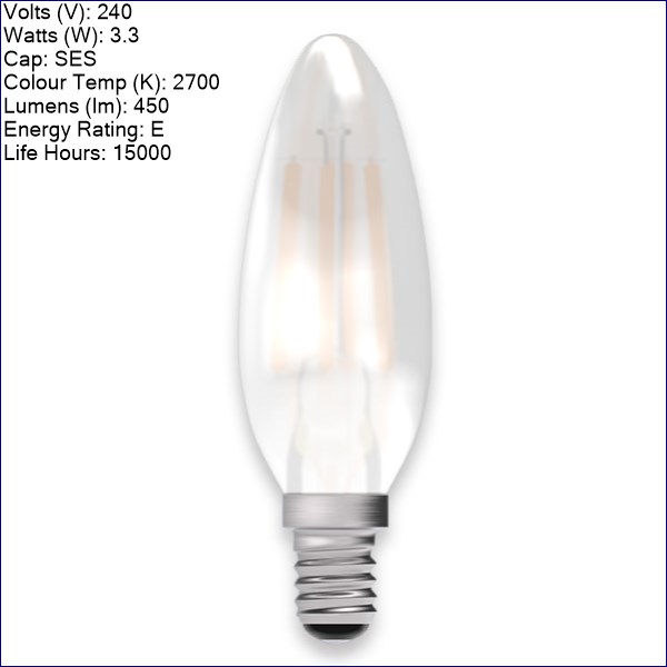 - Name: LED 3.3W Dimmable Satin Filament Candle – SES – 2700K