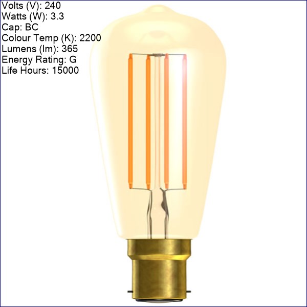 - Name: LED 3.3W Dimmable Vintage Amber Squirrel Cage – BC – 2200K