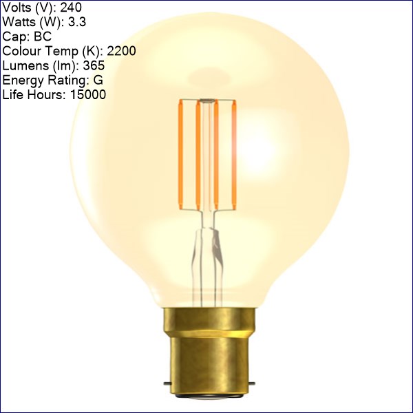 - Name: LED 3.3W Vintage Amber Globe – BC – 2200K