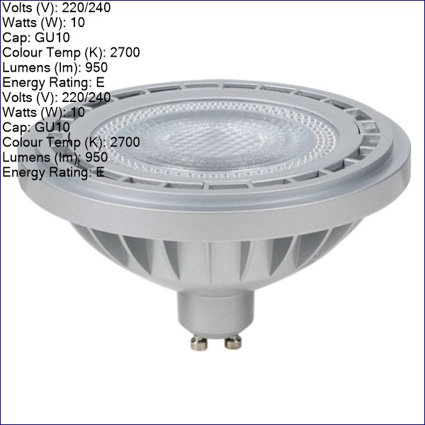 - Name: LED 10W Dimmable AR111 – GU10 – 60° Beam – 2700K