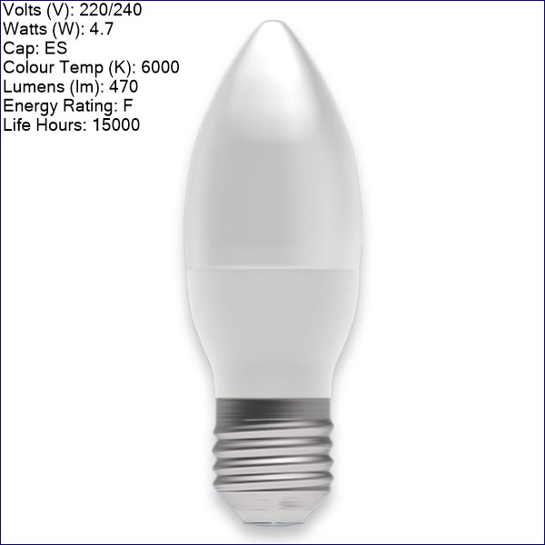 B60893 | BELL 4.7W GENESIS CANDLE OPAL DIMMABLE ES 6000K 470LM