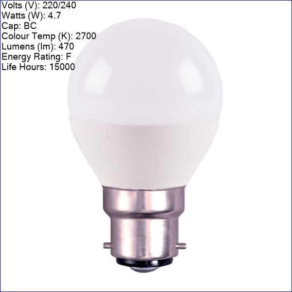 - Name: Genesis 4.7W LED Opal Round – BC – 2700K