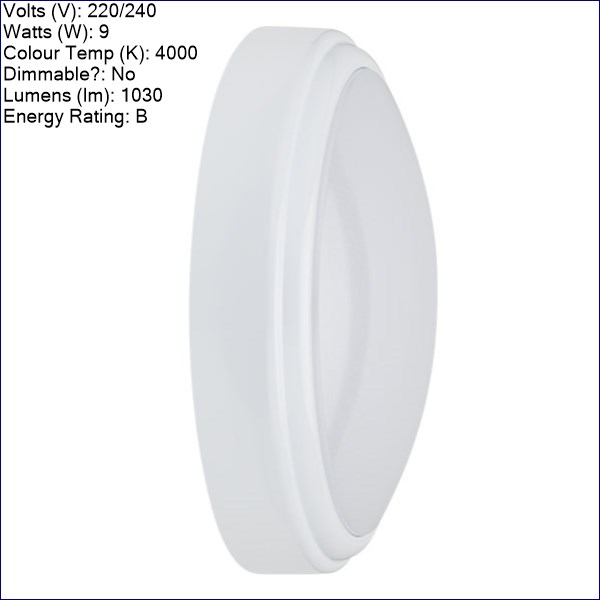 B70052 | BELL 9W AQUA GENESIS LED BULKHEAD WHITE M/W SENSOR ON/OFF 4000K – 240mm DIAMETER