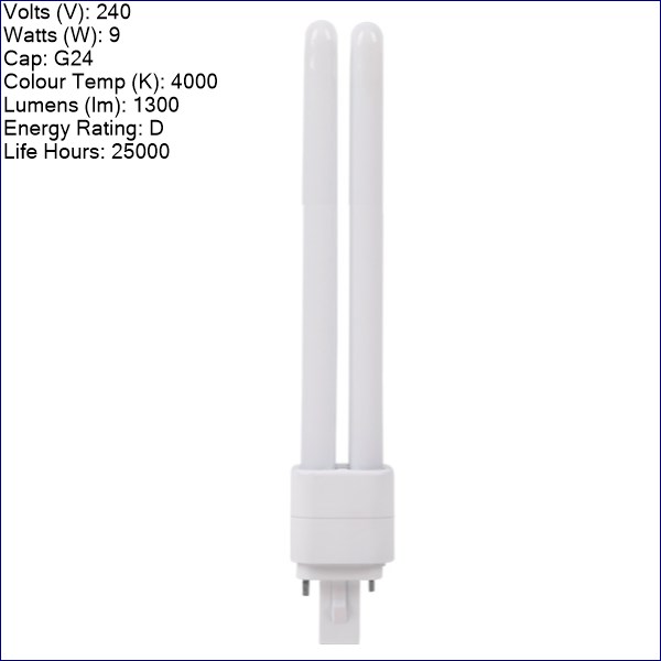 - Name: LED 9W Glass BLD – 2 Pin – Bypass – 4000K (Equivalent to 26W)