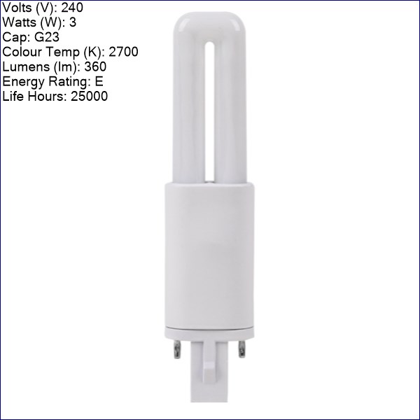 B71014 | BELL LED 3W GLASS BLS 2 PIN BYPASS G23 2700K 360LM (CFL 7W = LED 3W)