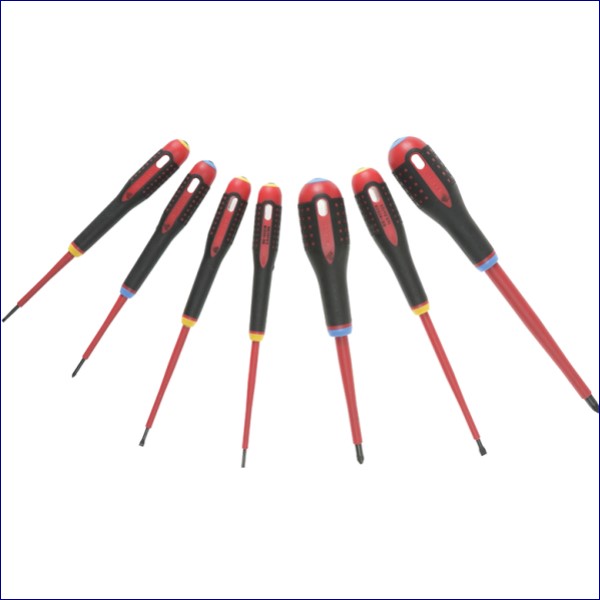 Bahco BE-9886 ERGO™ Screwdriver Set 6 Piece with ergonomically developed 3-component handle of polypropylene and thermoplastic elastomere. Permanent colour codes at both ends of the handle as a time saving aid for application identification.