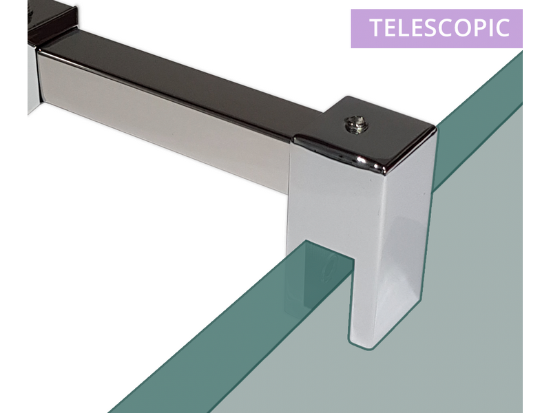 Glass to glass square telescopic shower support bar | 700 to 1200mm long | 6mm glass