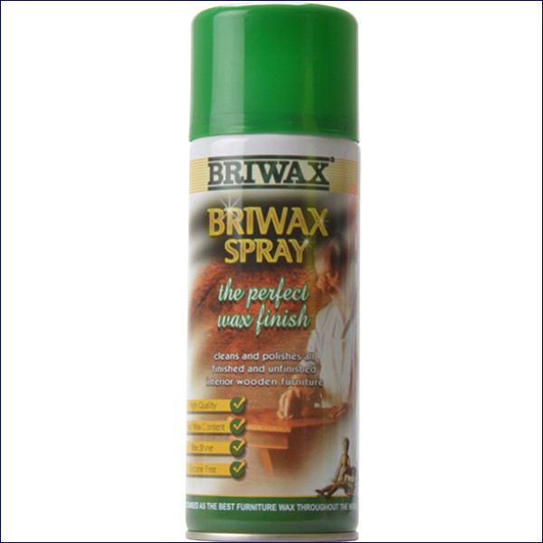 BRIWAX SPRAY, is a revolutionary new surface shine and spray polish for antique reproduction finishes, especially for usage on hardwoods like teak, oak, mahogany and walnut where it gives added depth to tired or jaded surfaces commonly seen in antique and regular furniture showrooms. Briwax Spray can also be used as a top coat finish for new wood, whether hard or soft, and works as an excellent alternative to hard paste waxes for all interior wood.
