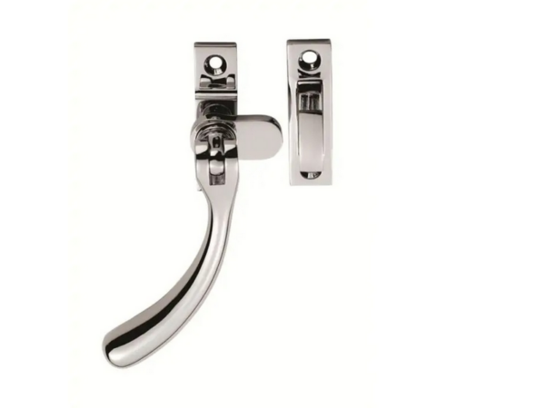 Robust window casement fastener for timber windows. Non locking. Suitable for weather stripped windows. Available in two sizes.