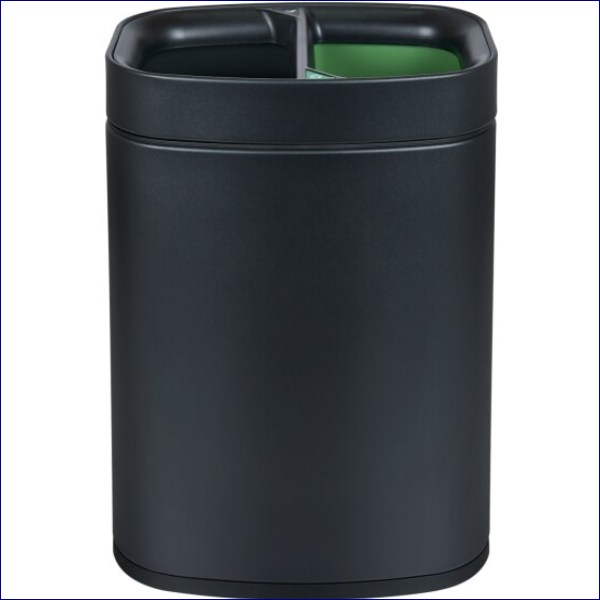 The Newport Dual Recycling Bin in black is an elegant, eco-friendly solution for hotel guestrooms. Featuring international recycling icons, a removable collar and inserts, and a concealed bag design, it makes waste separation easy and tidy. Built with durable construction, this sleek bin offers a stylish and sustainable option for any hospitality setting. Ideal for promoting eco-friendly practices within your hotel guest expeerience.