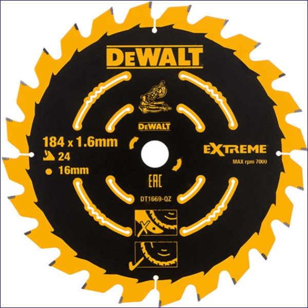 DEWDT1669QZ | DEWALT Cordless Mitre Saw Blade For DCS365 184 x 16mm x 24T
