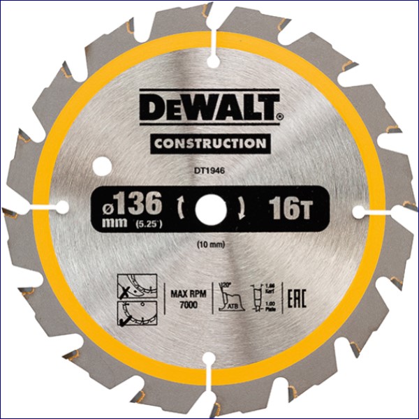DEWDT1946QZ | DEWALT Cordless Construction Trim Saw Blade 136 x 10mm x 16T