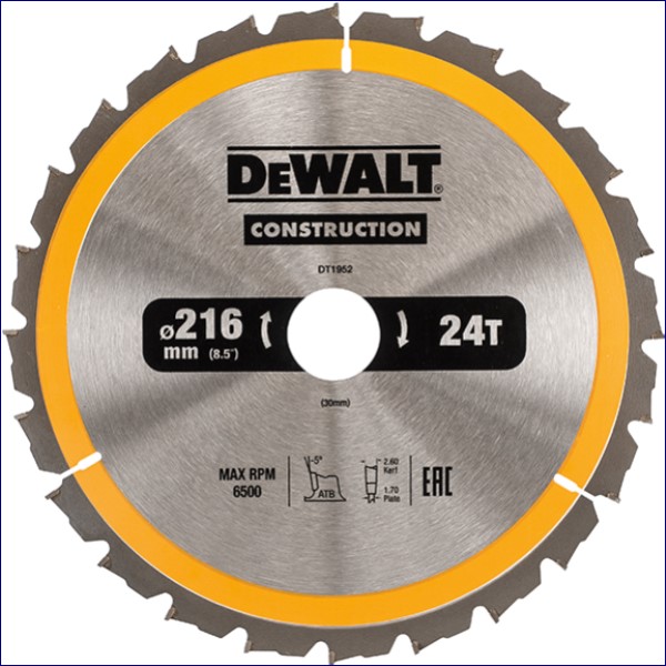 DEWDT1952QZ | DEWALT Stationary Construction Circular Saw Blade 216 x 30mm x 24T ATB/Neg