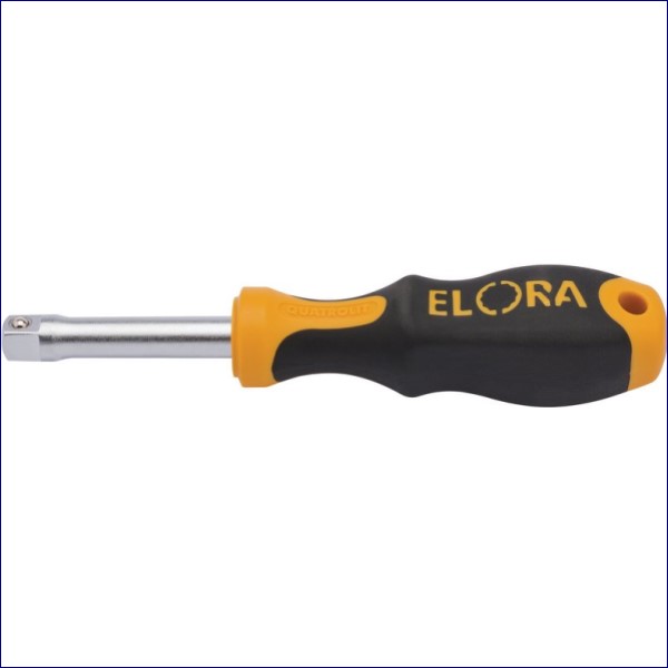 Professional Quality, manufactured from chrome vanadium steel hardened, tempered and chrome plated for corrosion protection. Spring-loaded ball bearing for secure socket holding. With Quatrolit® soft grip handle. Sold loose.