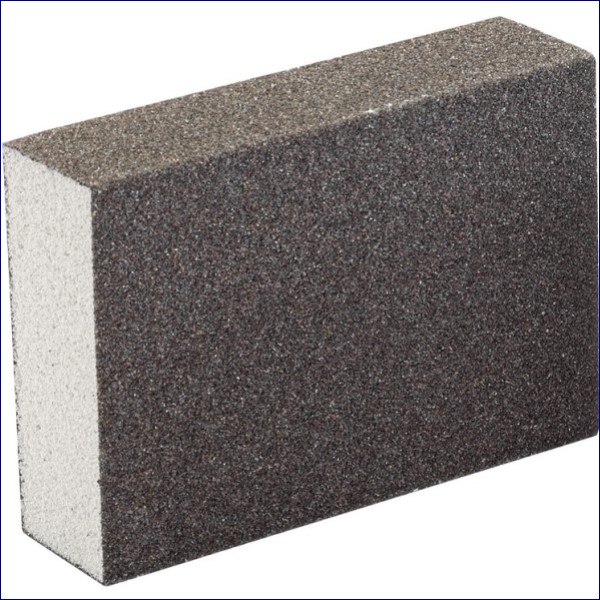 Dense foam sponge with two different grades of abrasive grit. Ideal for sanding angles, contoured or flat surfaces. Overall size: 102 x 70 x 23mm. Display packed.