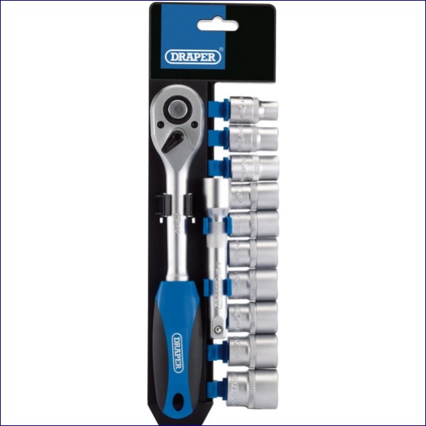 DR16374 | DRAPER Metric Socket and Ratchet Set, 1/2″ Sq. Dr. (12 Piece)