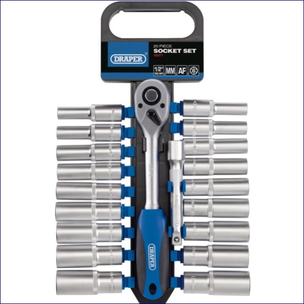 DR16377 | DRAPER Combined MM/AF Deep Socket and Ratchet Set, 1/2″ Sq. Dr. (20 Piece)