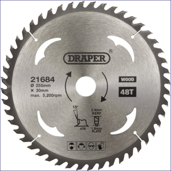 DR21684 | DRAPER TCT Circular Saw Blade for Wood, 255 x 30mm, 48T