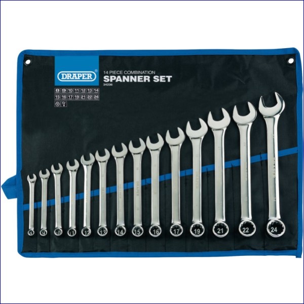 14 x Spanners: 8, 9, 10, 11, 12, 13, 14, 15, 16, 17, 19, 21, 22, 24mm.
