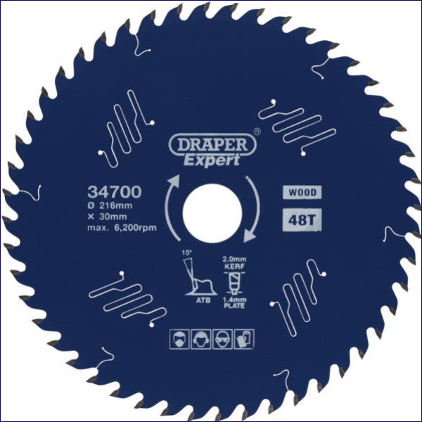 DR34700 | DRAPER Draper Expert TCT Circular Saw Blade for Wood with PTFE Coating, 216 x 30mm, 48T