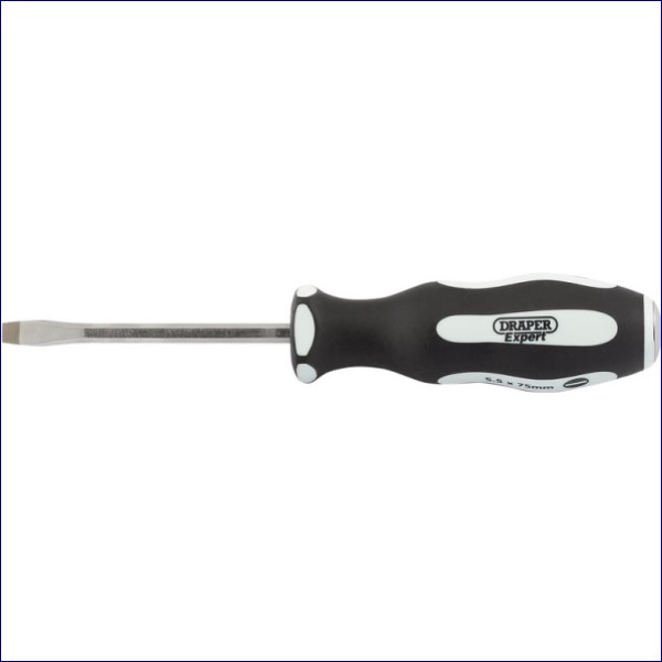 DR35176 | DRAPER ‘Pound Thru’ Plain Slot Soft Grip Screwdriver, 5.5 x 75mm