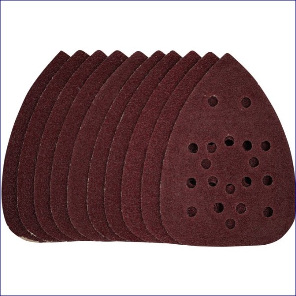 This pack of 140mm detail sanding sheets are made from premium quality aluminium oxide that is resin bonded to provide improved grain adhesion, anti-static qualities and long-lasting performance. The heavy-duty E-Weight backing paper makes the sanding sheet more durable – able to withstand the toughest jobs. The hook and loop backing offers decent adhesion to facilitate the fast changing of sanding sheets. The 19 pre-punched 8mm holes improve dust extraction. Ideal for sanding and finishing wood, metal, aluminium alloy, painted surfaces, plastic and fillers. Compatible with most detail sanders with 140mm hook and loop backing pads including Stock No. 02063.