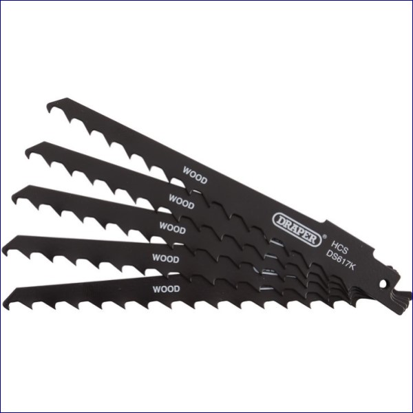 DRAPER Reciprocating Saw Blades for Wood and Plastic Cutting, 150mm, 3tpi (Pack of 5)