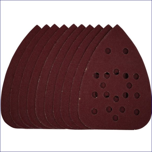 This pack of 140mm detail sanding sheets are made from premium quality aluminium oxide that is resin bonded to provide improved grain adhesion, anti-static qualities and long-lasting performance. The heavy-duty E-Weight backing paper makes the sanding sheet more durable – able to withstand the toughest jobs. The hook and loop backing offers decent adhesion to facilitate the fast changing of sanding sheets. The 19 pre-punched 8mm holes improve dust extraction. Ideal for sanding and finishing wood, metal, aluminium alloy, painted surfaces, plastic and fillers. Compatible with most detail sanders with 140mm hook and loop backing pads including Stock No. 02063.