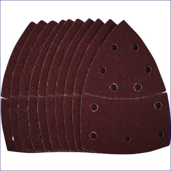 These multi-sanding sheets have a perforated tear off delta sheet for detail sanding (102 x 62mm, 93mm). They are made from aluminium oxide that is resin bonded to provide improved grain adhesion, anti-static qualities and long-lasting performance. The heavy-duty E-Weight backing paper makes the sanding sheet more durable – able to withstand the toughest jobs. The hook and loop backing offers decent adhesion to facilitate the fast changing of sanding sheets. The 11 pre-punched 8mm holes help eliminate clogging and improve the dust extraction. Ideal for sanding and finishing wood, metal, aluminium alloy, painted surfaces, plastic and fillers. Compatible with most mouse detail sanders with hook and loop backing pads including Draper Stock No. 57681.