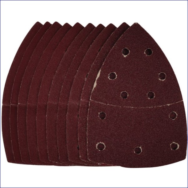 These multi-sanding sheets have a perforated tear off delta sheet for detail sanding (102 x 62mm, 93mm). They are made from aluminium oxide that is resin bonded to provide improved grain adhesion, anti-static qualities and long-lasting performance. The heavy-duty E-Weight backing paper makes the sanding sheet more durable – able to withstand the toughest jobs. The hook and loop backing offers decent adhesion to facilitate the fast changing of sanding sheets. The 11 pre-punched 8mm holes help eliminate clogging and improve the dust extraction. Ideal for sanding and finishing wood, metal, aluminium alloy, painted surfaces, plastic and fillers. Compatible with most mouse detail sanders with hook and loop backing pads including Draper Stock No. 57681.