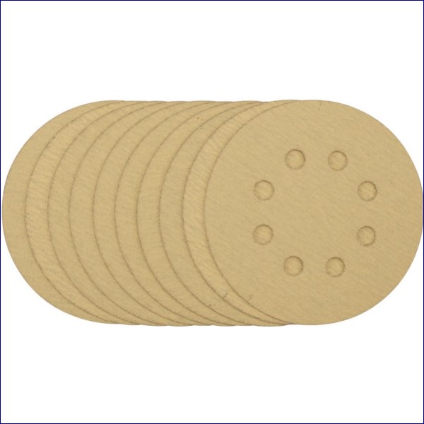 DR58111 | Gold Sanding Discs with Hook & Loop, 125mm, 120 Grit, 8 Dust Extraction Holes (Pack of 10)