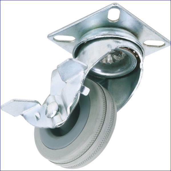 DRAPER Swivel Plate Fixing Rubber Castor with Brake, 50mm Diameter, S.W.L. 50kg