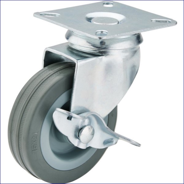 DRAPER Swivel Plate Fixing Rubber Castor with Brake, 75mm Diameter, S.W.L. 70kg