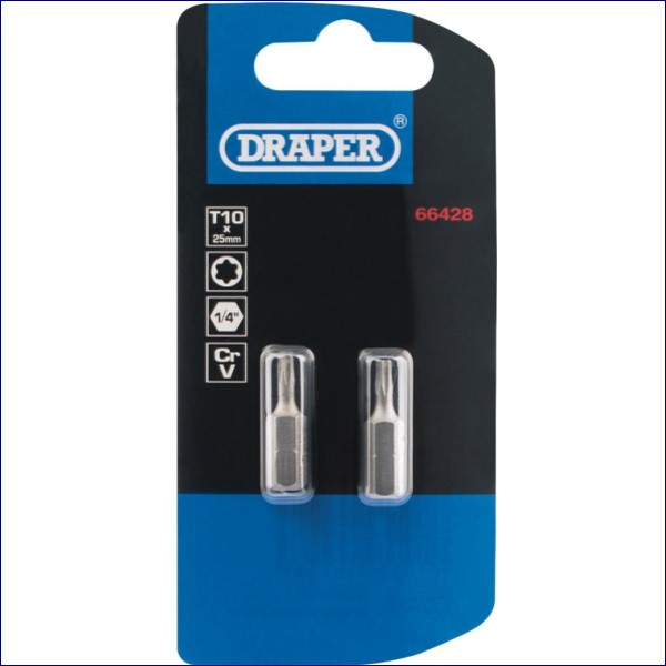 DR66428 | DRAPER Draper TX-STAR® Insert Bit, 1/4″ Hex, 25mm Long, T10 (Pack of 2)