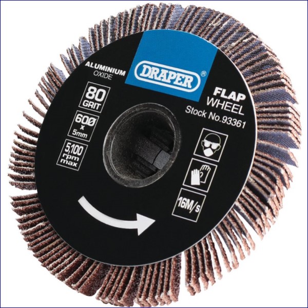 DR93361 | DRAPER Aluminium Oxide Flap Wheel, 5 x 60mm, 80 Grit