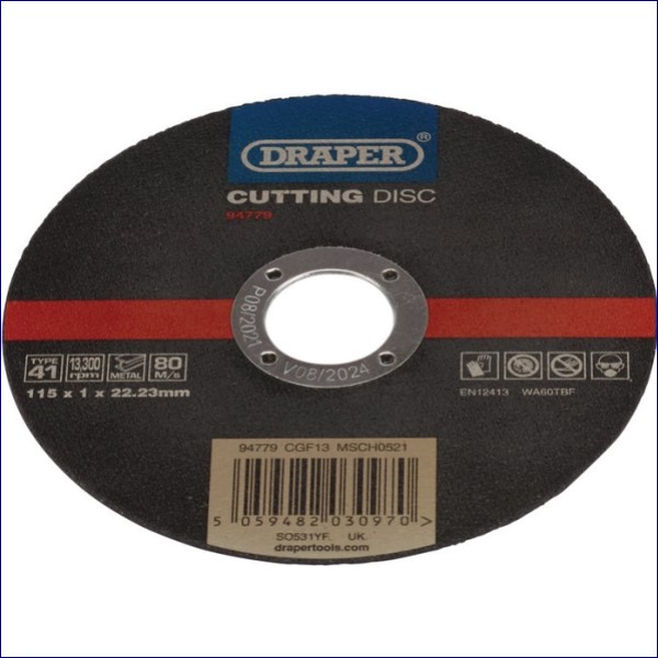 DR94779 | DRAPER Stainless-Steel/Inox Metal Cutting Disc, 115 x 1 x 22.23mm