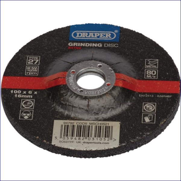DR94792 | DRAPER DPC Metal Grinding Disc, 100 x 6 x 16mm