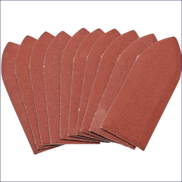 These durable hook and loop backed aluminium oxide sanding sheets come in various grit grades, suitable for sanding wood, metal, plaster and painted surfaces. The pack of 10 is compatible with our sanding machine 57681 and similar machines from other manufacturers. The pack includes 1 x 60g, 3 x 80g, 3 x 120g, 3 x 240g.