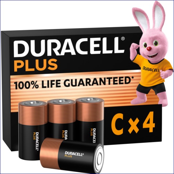 Pack of 4 Duracell C Cell Plus Power +100% Batteries.