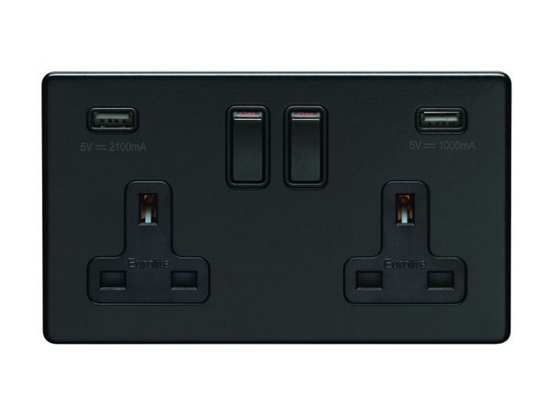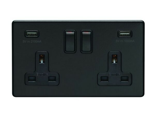 2 Gang 13Amp Switched Socket With Combined 3.1 Amp Usb Outlet on Flat Concealed Plate. Available in White, Matt Black and Antique Brass with Matching Rockers
