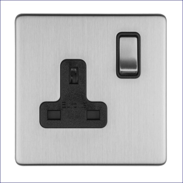 ELECSS1SOB | EUROLITE CONCEALED STAINLESS STEEL 1 GANG SOCKET WITH BLACK TRIM