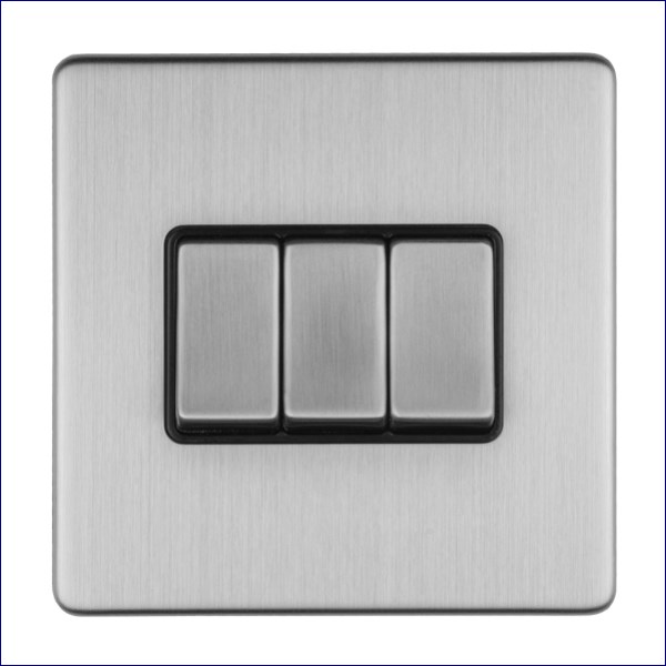 ELECSS3SWB | EUROLITE CONCEALED STAINLESS STEEL 3 GANG 10A 2WAY SWITCH WITH BLACK TRIM