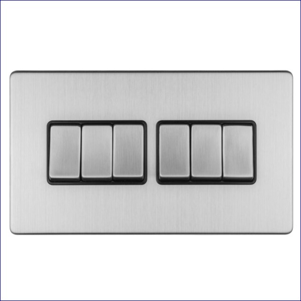 ELECSS6SWB | EUROLITE CONCEALED STAINLESS STEEL 6 GANG 10A 2WAY SWITCH WITH BLACK TRIM
