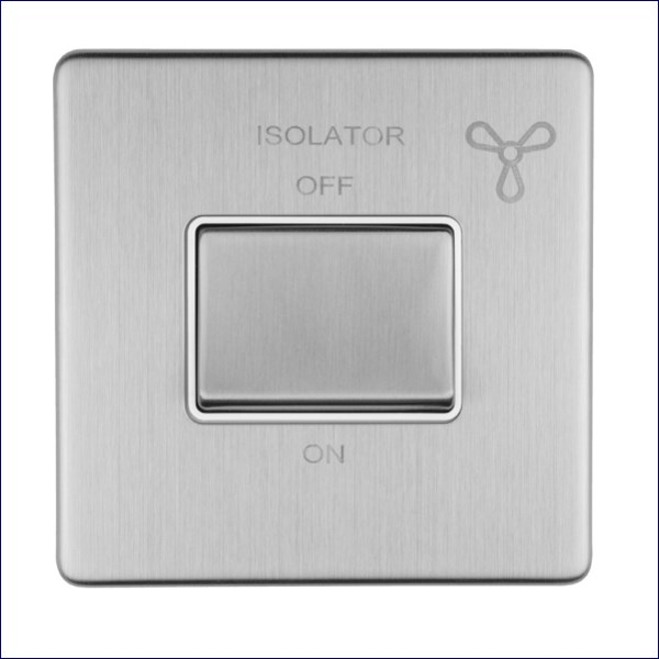 ELECSSFSWW | EUROLITE CONCEALED STAINLESS STEEL FAN ISOLATOR SWITCH WITH WHITE TRIM