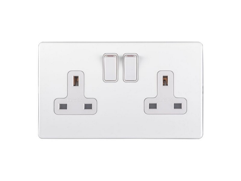 CONCEALED WHITE 2 GANG SOCKET WITH WHITE TRIM