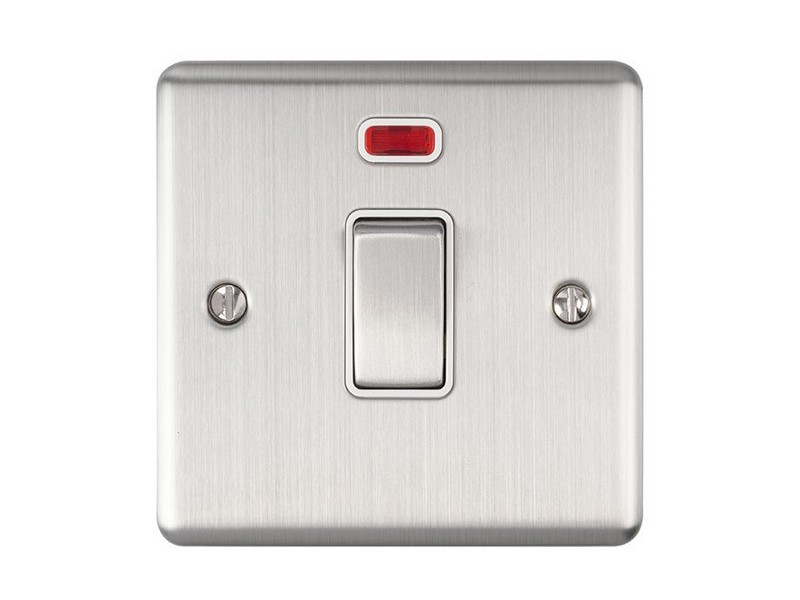 ELEN20ASWNSSW | EUROLITE ENHANCE DECORATIVE SATIN STAINLESS STEEL 1 GANG 20A NEON SWITCH WITH WHITE TRIM