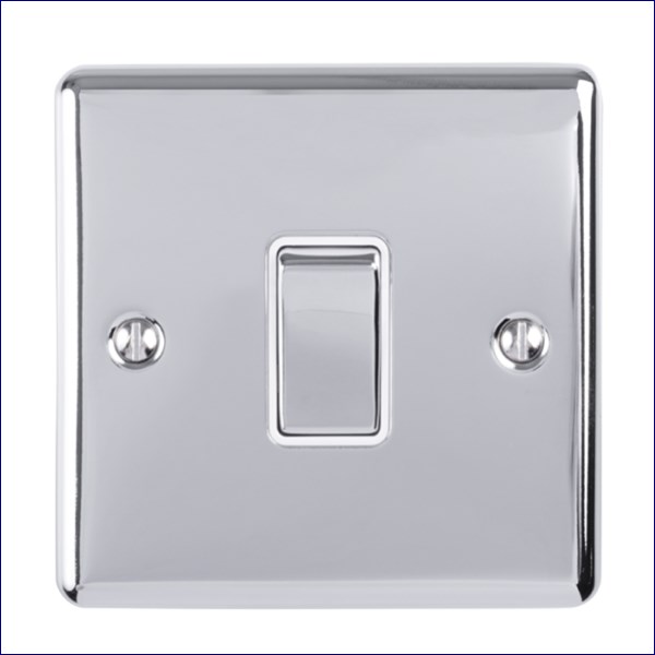 ELEN20ASWPCW | EUROLITE ENHANCE DECORATIVE POLISHED CHROME 1 GANG 20A SWITCH WITH WHITE TRIM