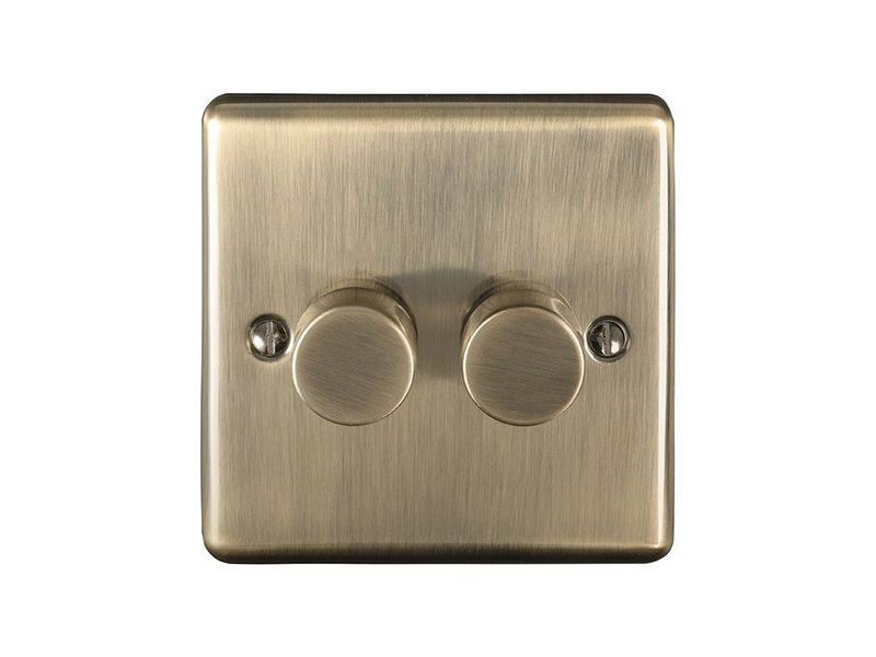 ENHANCE DECORATIVE ANTIQUE BRASS 2 GANG 400W/LED 2 WAY DIMMER SWITCH