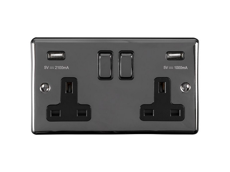ENHANCE DECORATIVE BLACK NICKEL 2 GANG USB SOCKET WITH BLACK TRIM