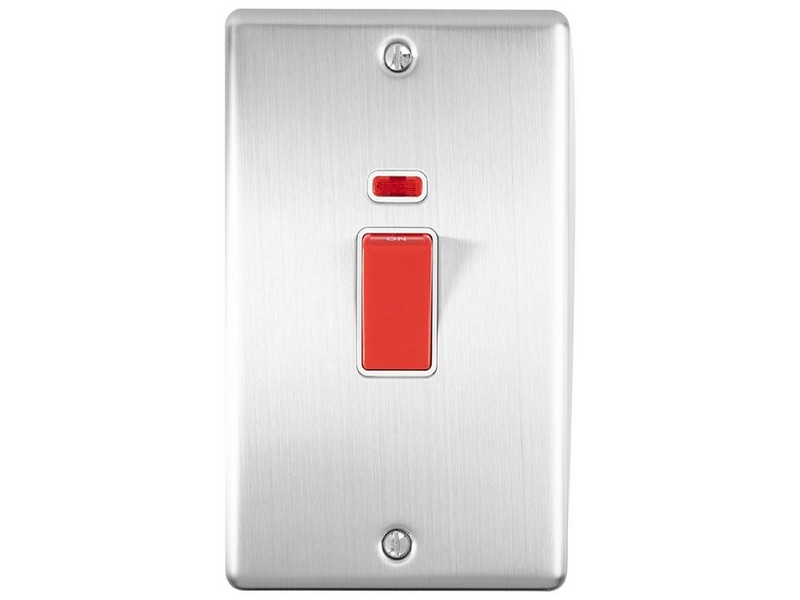 ENHANCE DECORATIVE SATIN STAINLESS STEEL 45A COOKER NEON SWITCH WITH WHITE TRIM